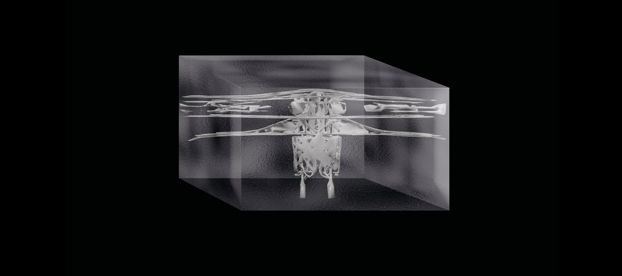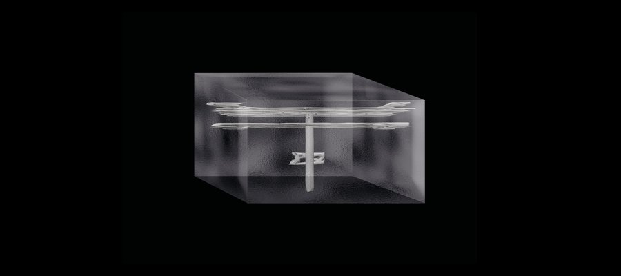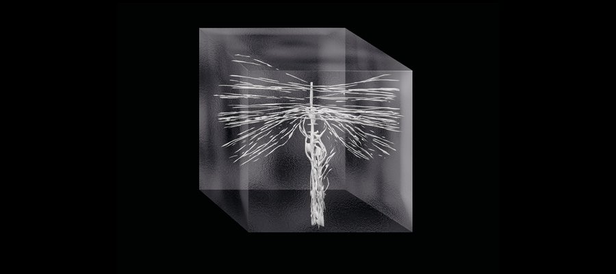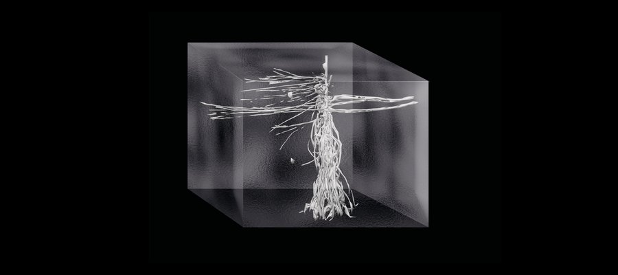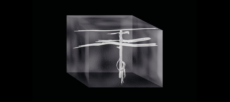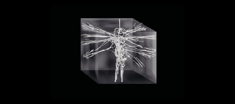 Объекты экспонируются в прозрачных боксах, которые искусственно ограничивают их, не позволяя «проводам» расползтись и наоборот концентрируя в себе хаос.