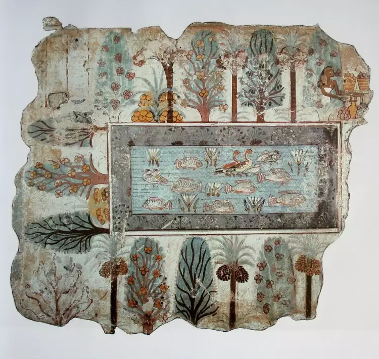Живопись Древнего Египта. Фреска с садом и бассейном в поместье Небамона, 1350 до н. э