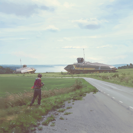 Симон Столенхаг — шведский художник, иллюстратор и писатель, известный созданием уникального визуального мира, где повседневность 80–90-х годов сталкивается с ретрофутуризмом и постапокалиптикой. Его работы изображают сельские пейзажи Швеции с элементами научной фантастики: гигантские машины, полуразрушенные исследовательские комплексы, роботы и аномальные явления становятся естественной частью привычной среды.