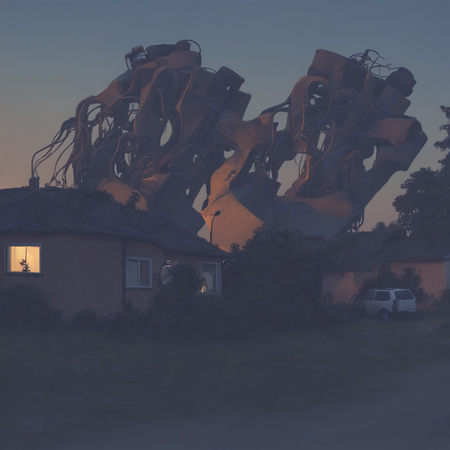 «Безвременье» — это серия нейросетевых изображений, вдохновлённых миром и стилем Симона Столенхага. В этой работе авторский визуальный язык адаптирован для исследования темы застывшего времени — пространств, в которых будущее уже наступило, но оказалось забытым.