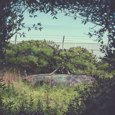 Визуально его стиль напоминает традиционную живопись — с мягкой кистью, приглушённой палитрой и акцентом на атмосферу. При этом он цифровой: каждая работа — результат точной и кропотливой цифровой живописи. Работы Столенхага не просто красивы — они полны тревожной ностальгии и затрагивают темы памяти, одиночества, времени и границ прогресса.