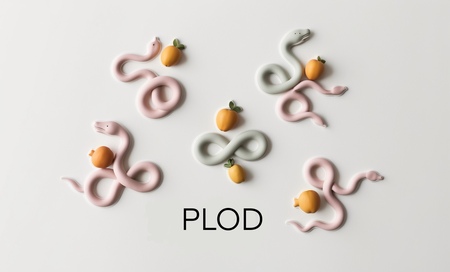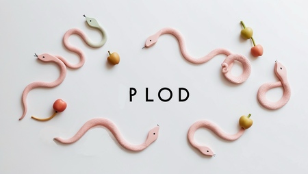 Model: Leonardo AI Prompt: minimalistic stickers in a pastel palette with snakes and fruits, black lettering, writings «PLOD», white background Preset: minimalist
