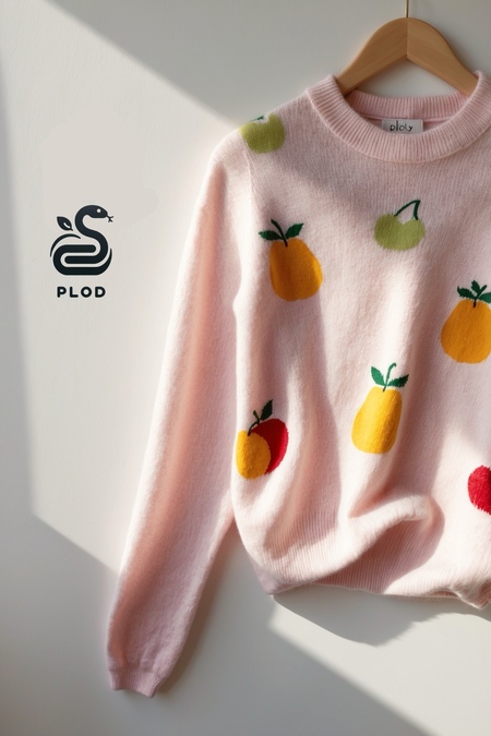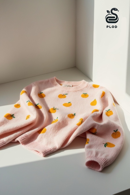 Model: Leonardo AI Prompt: a sweater in pastel colours with a fruit print Preset: minimalist