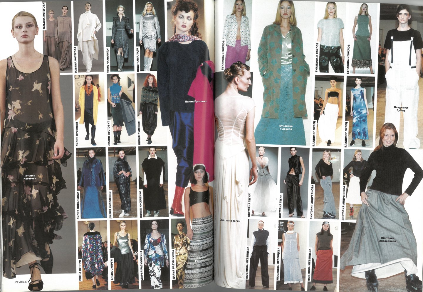 Например, в двухтысячных журнал Vogue выходил объемом в 450 страниц, и в некоторых номерах о российском дизайнере можно найти одно упоминание в подборке трендов.
