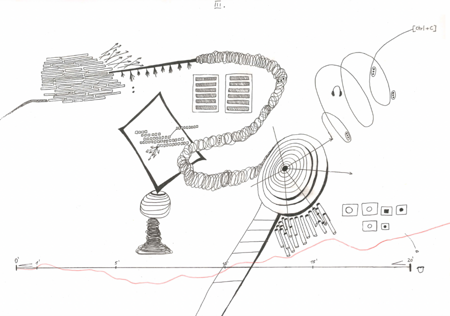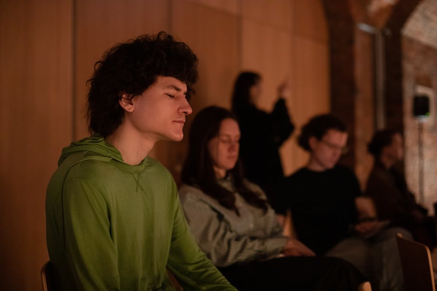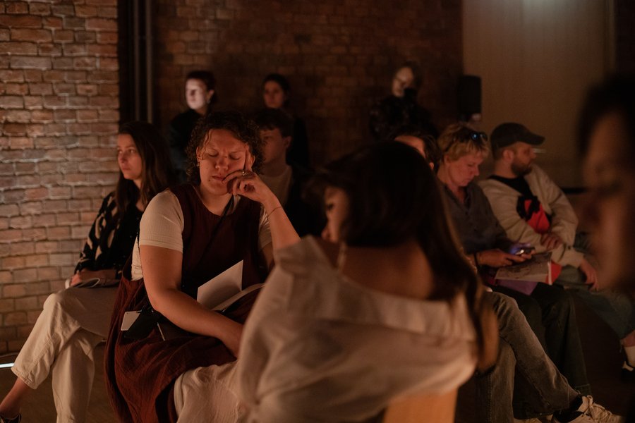 Моя задача была найти свой звук и упорядочить прочтение партитур. В основе композиции — шорохи и звуки, которые может издавать человеческое тело, а также предзаписи: голос города, который я слышала и захватывала на рекордер. Мне было интересно сделать акцент на человека, человека в среде, возвращая естество его природы.