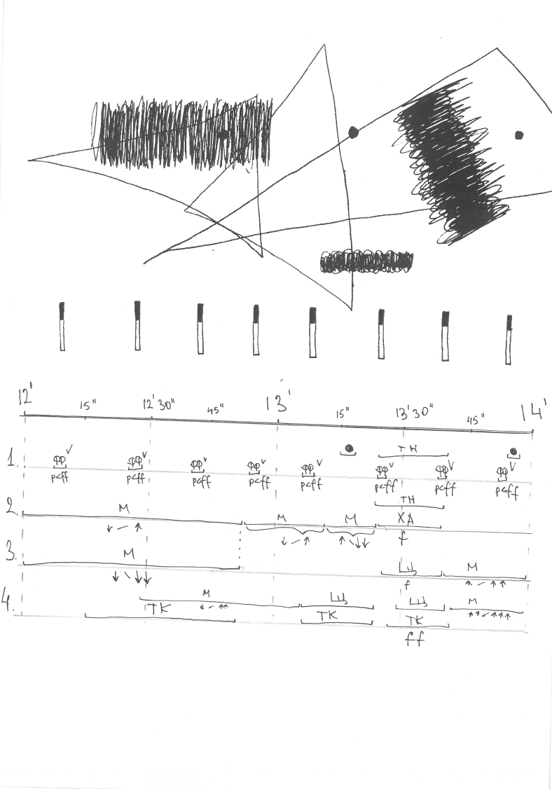 Листы с графическими партитурами распределяются между тремя музыкантами: