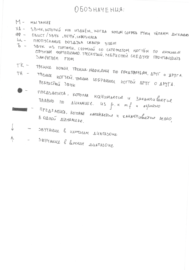 Примечания к графике: изменение плотности — тембральное изменение изменение штриха — смена способа звукоизвлечения