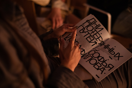 В иллюстрациях Влада Буракова я увидела взаимодействие пустот и явлений в пространстве. Я явно слышала эти иллюстрации и почувствовала, что у нас с Владом состоялся немой диалог. Я постаралась учесть то, что он указал в своей аннотации, но не потерять свой взгляд и слово.