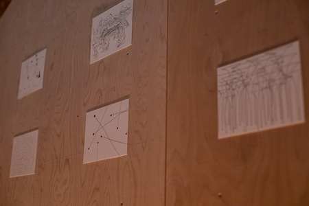 Совместное движение участников лаборатории включало рассуждения о перемещении звука из партитуры в пространство, исследование помещений «Сводов» и обсуждение аудиоландшафта привычной дороги домой. Каждый художник интерпретировал эти вводные в собственной манере и создал серию произведений, которые представляют собой систему визуальных образов. В свою очередь, музыканты размышляли уже над этими произведениями, представив графические партитуры и звуковые композиции. Особенно важно, что работы каждого художника анализировал и декодировал только один музыкант.