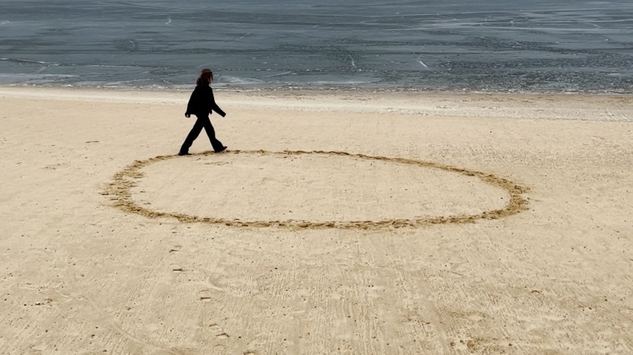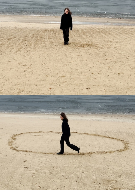 Видео показывает двойственное восприятие движения, неуверенность в направлении его пути. Как прервать цикл повторений и не наступать на протоптанные шаги? Случится ли достижение конечной точки, и окажется ли результат стоящим этих усилий? Есть ли смысл задумываться о том, пока дрейф продолжается?