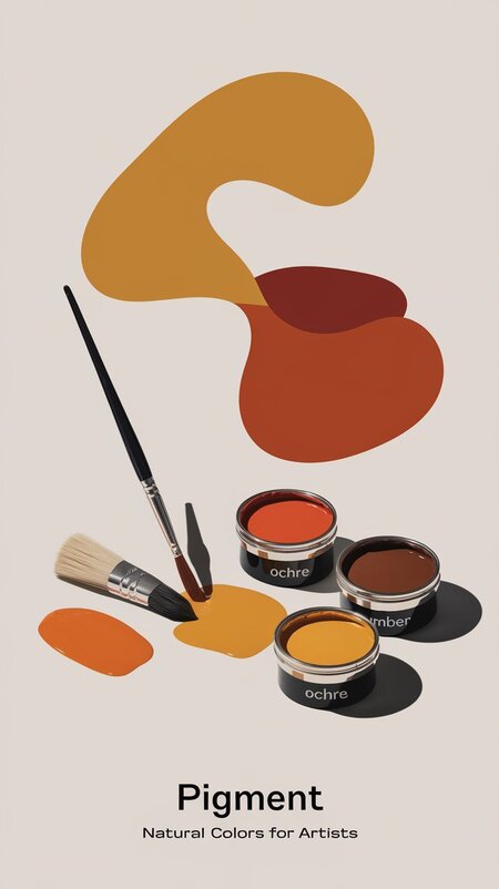 Prompt: create a promotional poster for the brand of eco paint for artists based on natural elements «Pigment» in minmalistic style