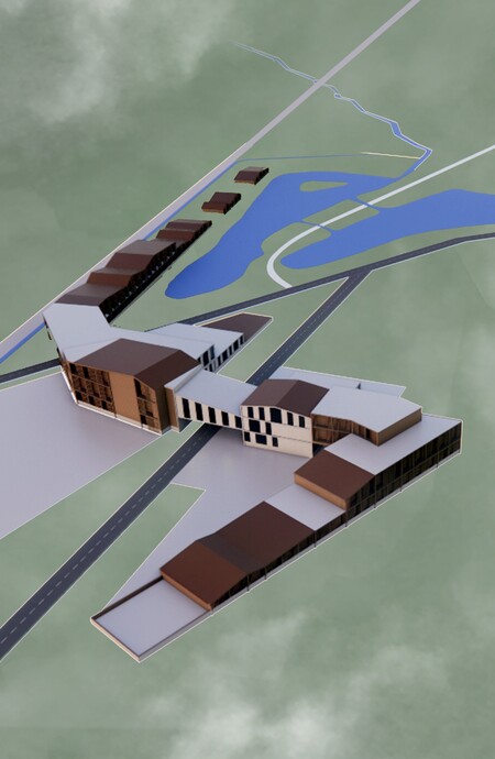 Расположение проекта связано с 3 дорогами, которые ведут в ключевые места проведения мероприятий. Буквально выбрано место объединения 2 дорог в 1, которая ведет в город.