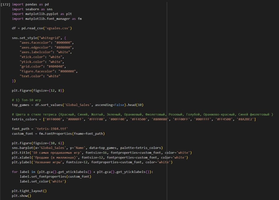 А также, чтобы графики смотрелись ещё интересней и под тему, я использовал гарнитуру — Tetris 1984