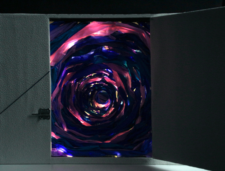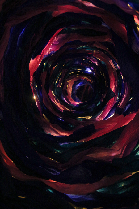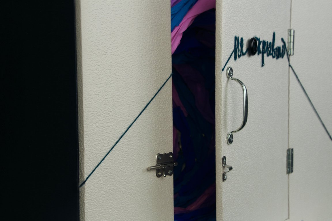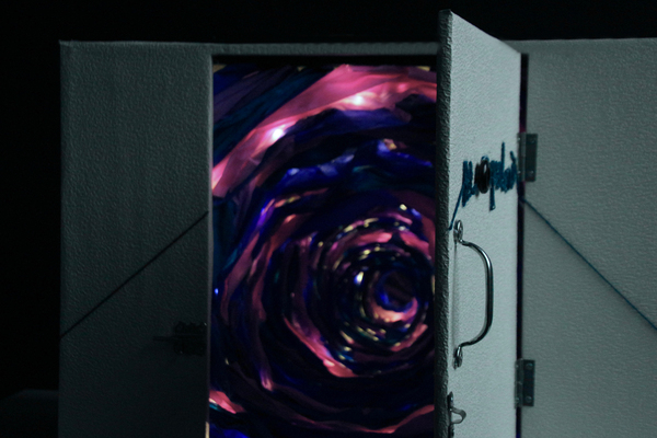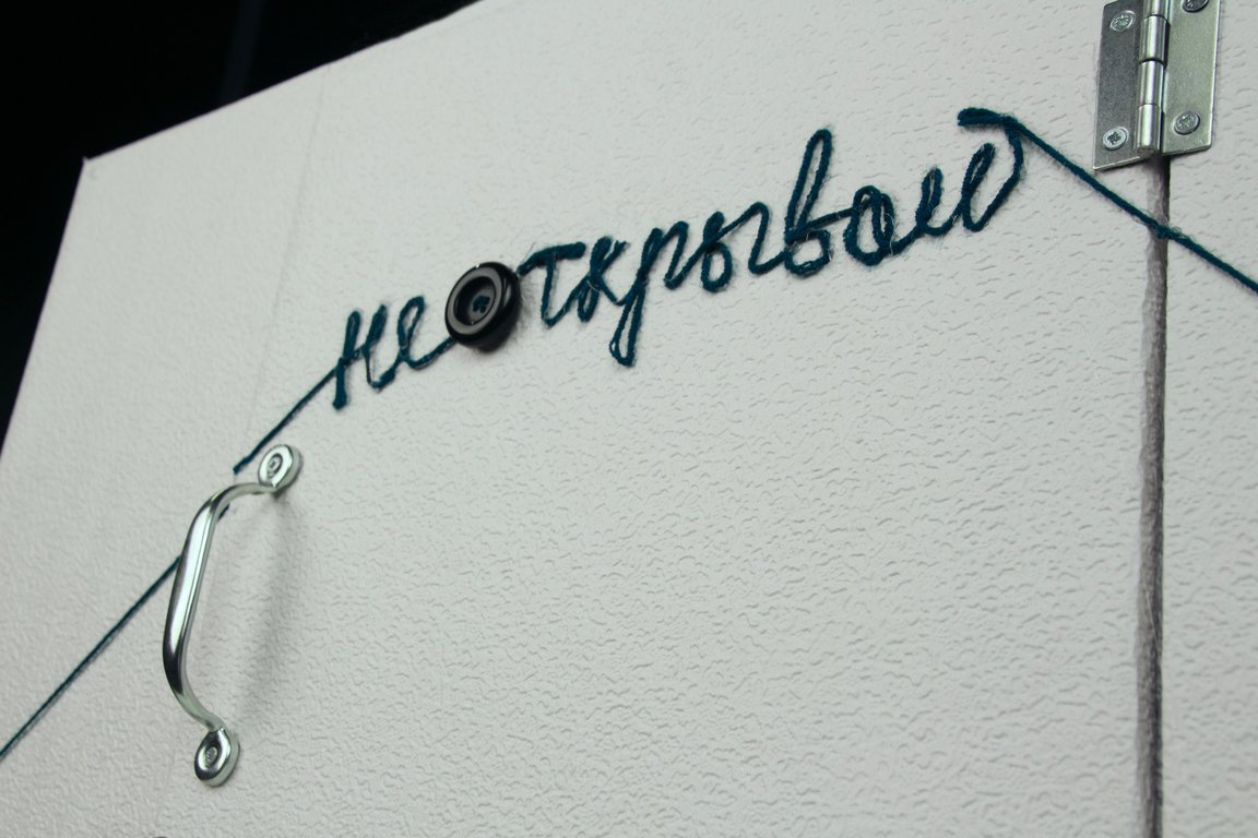 Витрина повторяет путь героини: сначала перед зрителем — лишь неприметная стена с маленькой дверью. Но стоит открыть её — и взору открывается волшебный тоннель, сияющий красками и светом, словно обещающий воплощение мечты.