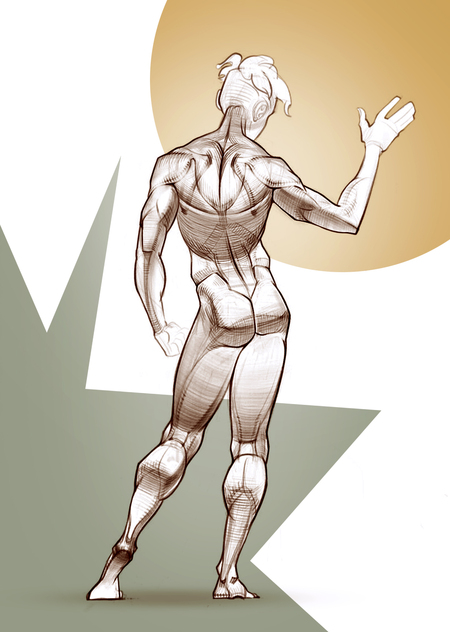 В ходе обучения человеческой анатомии были не только проработаны особенности корректной отрисовки комплекса мышц и костей, но еще и отработаны способы графического изображения фигуры от сложных геометрических структур.