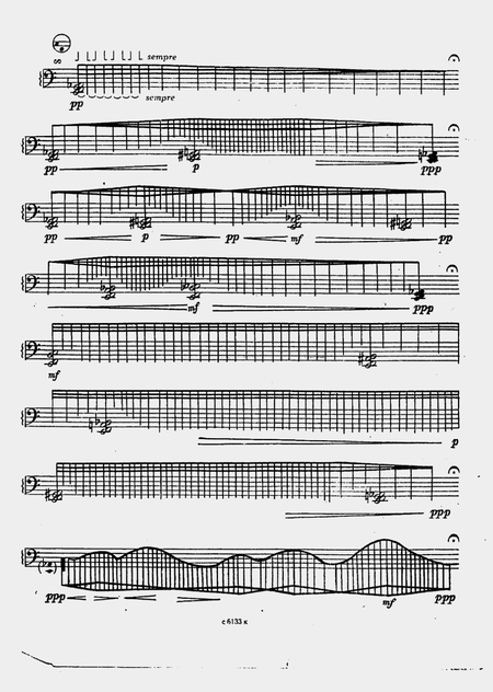 Графические партитуры Софии Губайдуллиной отличаются от экспериментальной нотации других композиторов ее стремлением к нахождению баланса между традиционной нотной записью и интеграцией собственного видения музыкального произведения в ее запись.