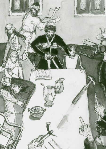 Иллюстрации к книге: Штыбин, В. Ислам, традиции и парламентаризм. Народные лидеры на Северо-Западном Кавказе в 1820–1865 годах / Виталий Штыбин; ил. Валерии Чуйковой. — М.: Новое литературное обозрение, 2025. — 416 с.: ил. (Серия «Что такое Россия»). ISBN 978-5-4448-2572-3