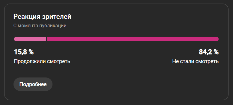 • Абсолютные цифры важнее процентов: 107 глубоко заинтересованных читателей на DTF ценнее, чем ~3 человека, начавших смотреть Shorts, даже при более высоком проценте вовлечения последнего