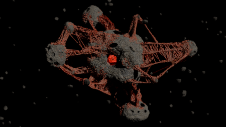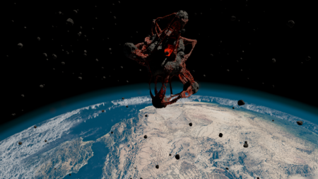 Его каменная структура заражена внеземным паразитом: безобразные, напоминающие сырое мясо волокна стягивают осколки породы воедино.