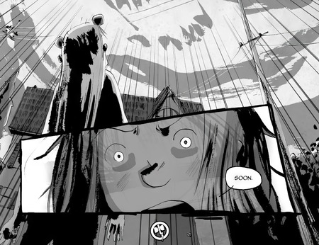 Кульминационный поворот комикса происходит тогда, когда юная героиня осознает, что пора перестать убегать от реальности и вступить в борьбу со своими «великанами».