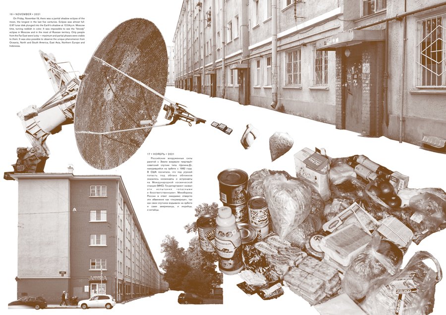 В своей публикации художник создал фантастические пейзажи и саркастические ситуации сочетая и коллажируя изображения между собой сделав их намеренно двусмысленными. Фотографии различных локаций сделанные в стиле путевых заметок, объединены с субъективно выбранными выдержками из сводок новостей, подробно описывающими российскую действительность от чрезвычайно обыденной до геополитической и дополненные цитатами из оригинальной статьи Андреса Хюссена. Фотографии работают вместе с текстом, разворачиваясь во времени и погружая зрителя в кусочек российской действительности.