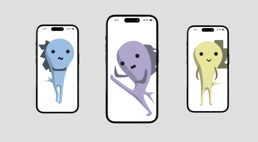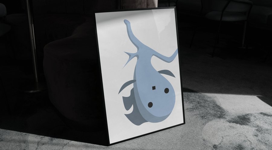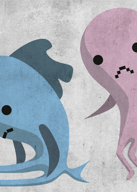 Основу изображения составляют рыбы, обладающие округлыми формами, напоминающими гладкие камни, обкатанные морской волной. В контексте этих иллюстраций квадратные элементы, напоминающие индустриальную архитектуру и бетонные блоки, будут интригующе сочетаться с мягкостью морских форм.