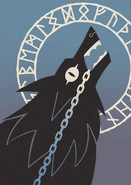 Комикс по брифу подкаста «Мрачные сказки» для проекта «Мифы», комедийно интерпретирующий сюжет мифа о создании цепи Глейпнир, сковывающей гигантского волка Фенрира.