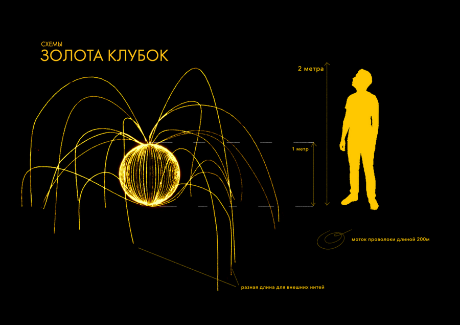 Вдохновленная техникой светового искусства в фотографии — фризлайт, я создала концепцию, где свет, оставляя за собой изящные линии, словно плетет тончайшие нити. В этом проекте я объединяю искусство золотого шитья и свет, чтобы создать удивительный клубок золотых нитей, который будет разрастаться, словно взрыв живительных потоков, в реку и во все стороны. Сам клубок представляет собой живую энергию — постоянно изменяющуюся, искрящуюся и трудноуловимую. Он наполняет пространство светом и теплом, словно отражая внутренний мир каждого мастера, напоминая о том, что искусство — это не только процесс, но и бесконечное путешествие к самовыражению.