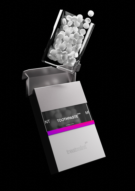 Treatmint — это паста, которую удобно брать с собой. Изначальная форма банки и метафора химических уравнений относит к удобству пользования продуктом, который полностью подходит вам медицински.