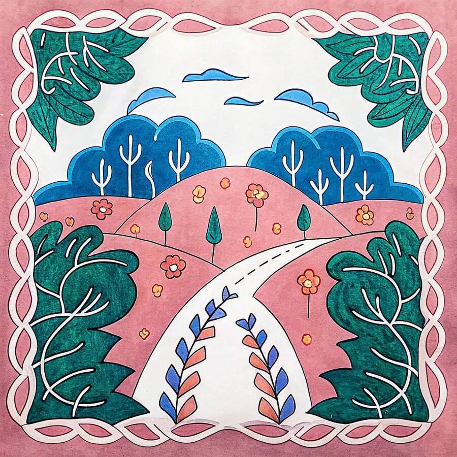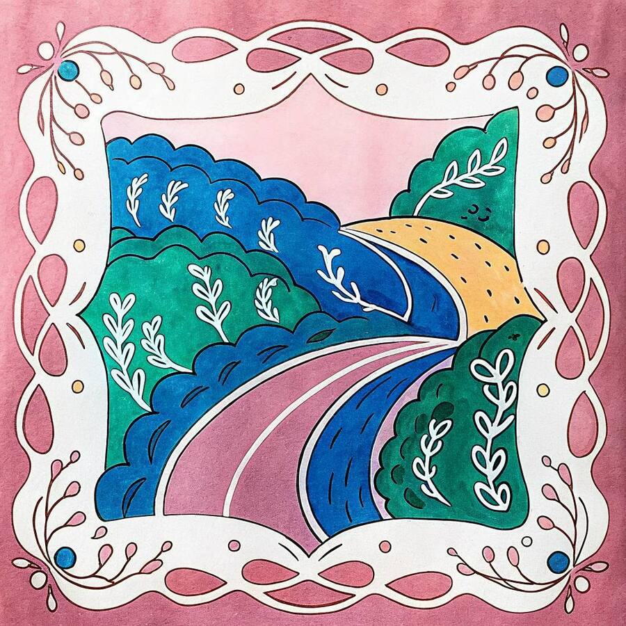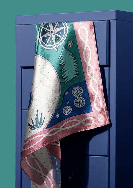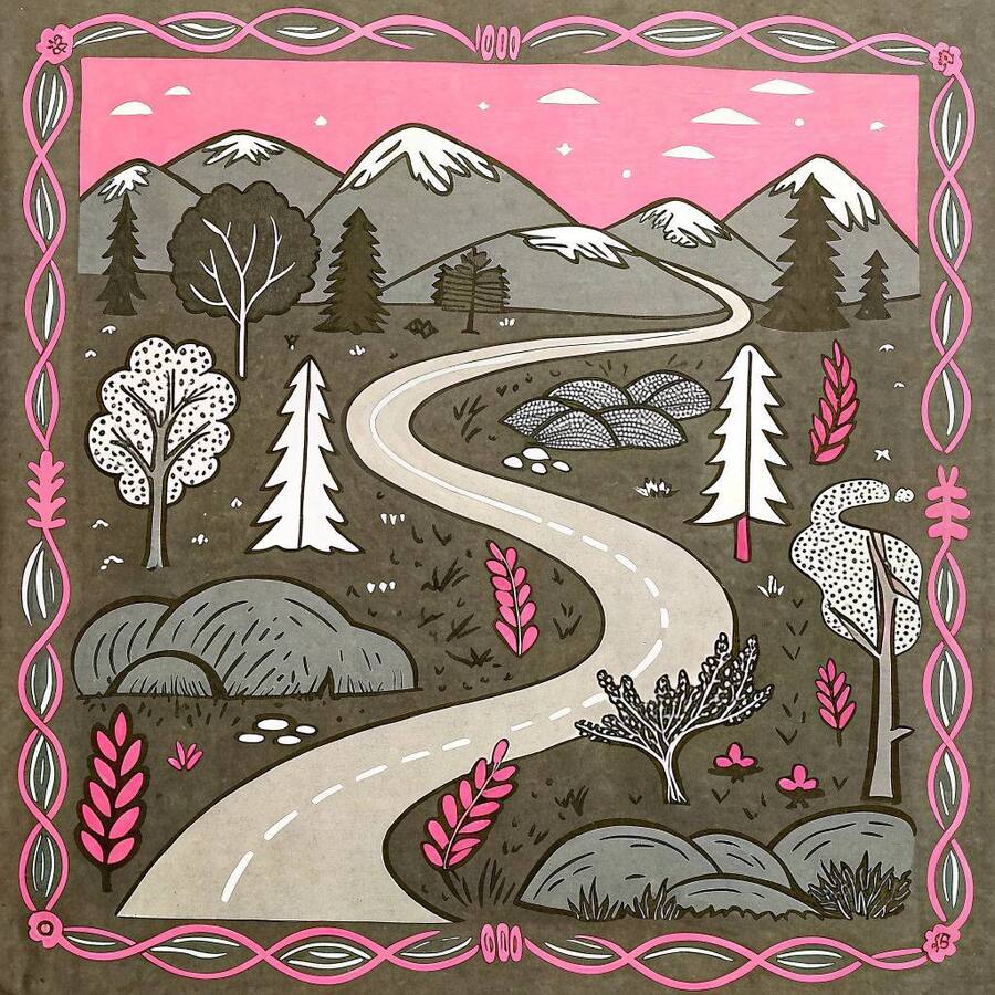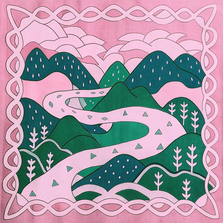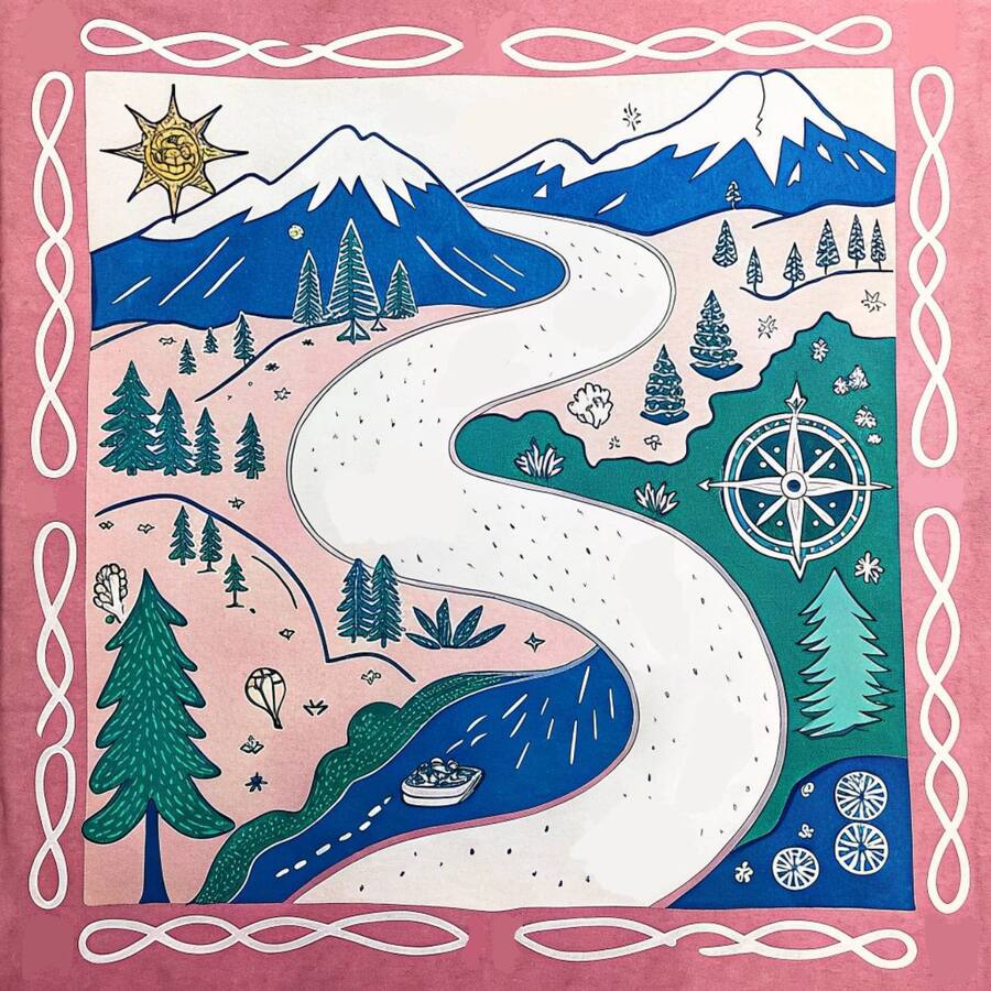 Принт вдохновлён темой «тропы», как символа жизненного пути. Он передаёт стремление к целям, перемены и надежду на светлое будущее. Дорога, изображённая на платке, символизирует движение вперёд, открывая новые возможности и перспективы. Атмосфера принта отражает пространство, где всё возможно, побуждая к поиску своего пути и вере в успех