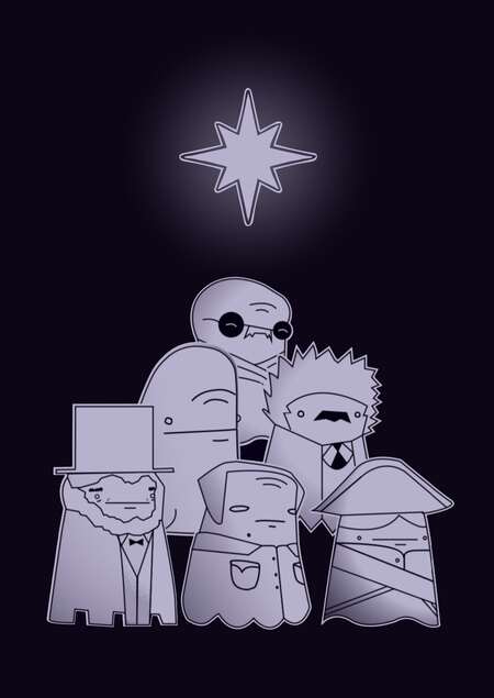 Фигурки танатонавтов символизируют 4 сильнейшие державы, отправляющие своих ученых в неизведанное.