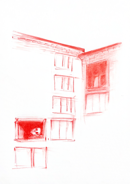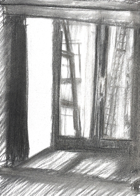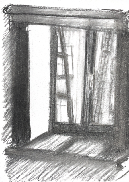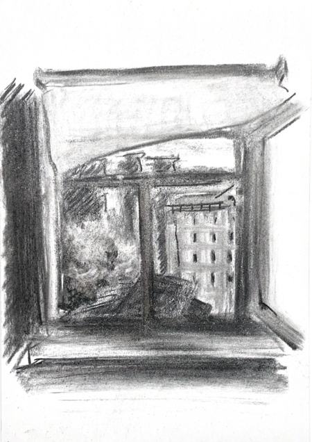 Виды нарисованы из окна, а после изменения точки обзора запечатлены окна, обрамляющие улицу.