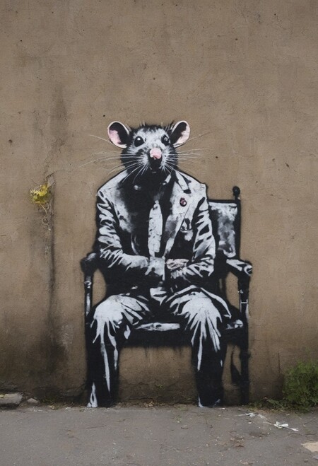 В творчестве Бэнкси часто встречаются образы животных, иногда гиперболизированные, в юмористическом или сатирическом контексте. Поэтому сочетание человеческого образа с образом животного идеально сочетается с творчеством художника.