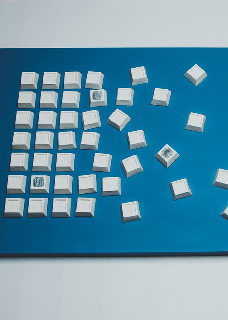 По структуре панно напоминает строгую, почти математически выверенную композицию. Белые фарфоровые вставки расположены в ровных рядах, создавая ощущение порядка, чистоты и контроля. Однако, начиная с центра, этот порядок постепенно нарушается: элементы начинают расползаться, становятся все более беспорядочными и хаотичными. Этот переход символизирует момент разрушения старых форм и появления чего-то нового, возможно, более живого и сложного.