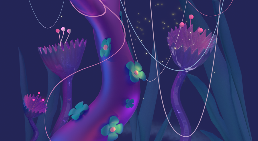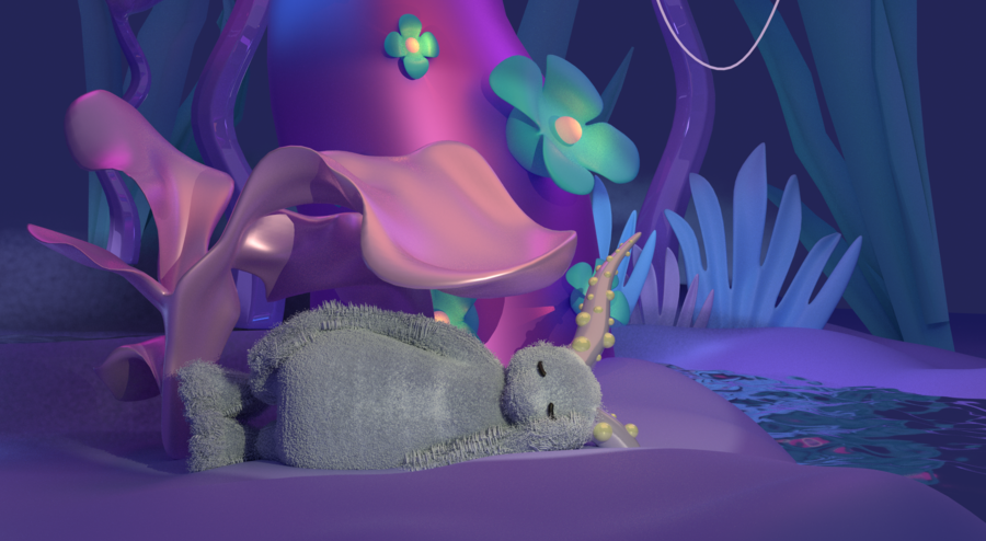 Медитативная 3D открытка с изображением волшебного леса и спящего под деревом фантастического персонажа, погружающая зрителя в атмосферу сказки и спокойствия и детства.