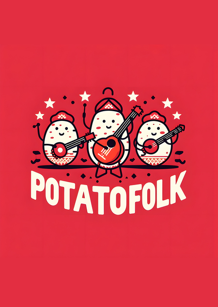 1. Название было переведено на латиницу 2. Логотип был сделан с помощью нейросети Copilot Designer, куда был введён промт «colorful minimalistic red and white logo for a belorussian band of potatoes playing on instruments made of potatoes with the word POTATOFOLK». 3. При помощи Adobe Color были найдены цвета, используемые в логотипе 4. На сайте myfonts был найден используемый шрифт
