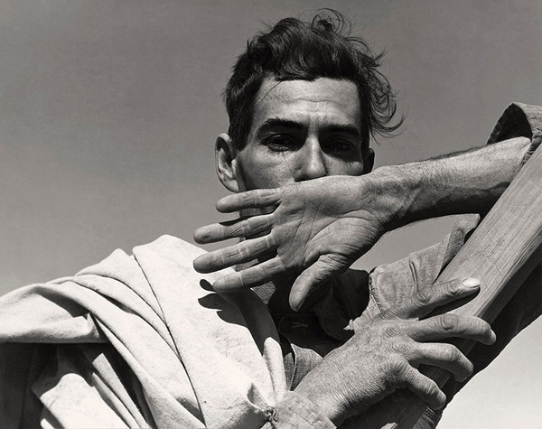 Доротея Ланг (1) Когда-то фермер из Миссури, теперь странствующий сельскохозяйственный работник / 1936 (2) Сборщик хлопка-мигрант с мешком хлопка, перекинутым через плечо, лежит на весах / 1940