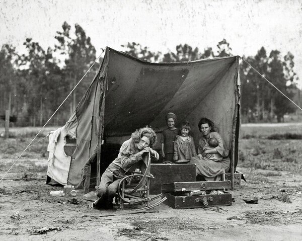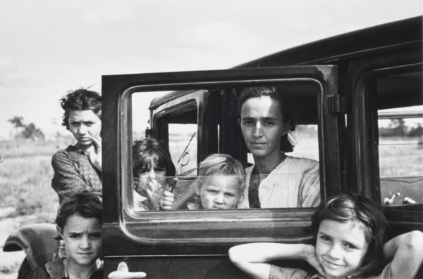Частым сюжетом социальной фотографии того времени стали мигранты. Многие из них путешествовали по стране, ища работу на фермах, в городах и на заводах, покидали свои дома в поисках лучшей жизни, стремясь найти выход из экономических трудностей. Люди бежали из районов Среднего Запада из-за пылевых бур, сельскохозяйственных неурожаев, которые начались вследствие потери рабочей силы и общей экономической депрессии.