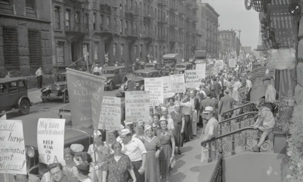 (1) Неизвестный фотограф / Большая толпа марширует по Нью-Йорку, требуя прав рабочих / 1937 (2) Неизвестный фотограф / Голодный марш Форда, участники марша в пути / 1932