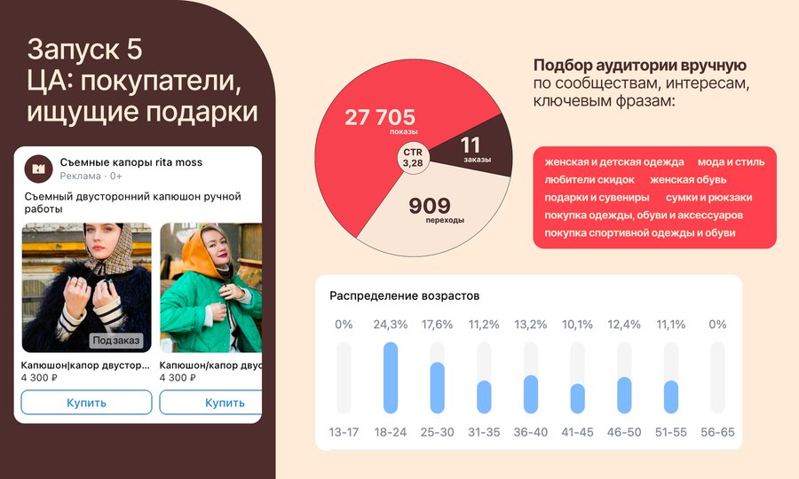 Ядро ЦА: — возраст: 35-55 лет — характер: ценят ручную работу и понимают, за что платят 4.300 рублей, любят создавать свои образы