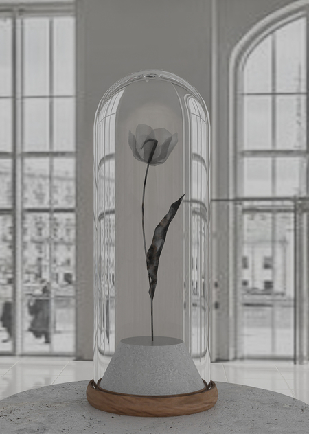 Когда посетитель подойдет ближе, он увидит, что за хрупкими, прозрачными лепестками каждого тюльпана скрывается острый крюк, который символизирует жестокое отношение к животным в цирке, особенно во время дрессировки. Тюльпаны предстают в новом обличии — металлические прутья, которые венчают острые крюки.