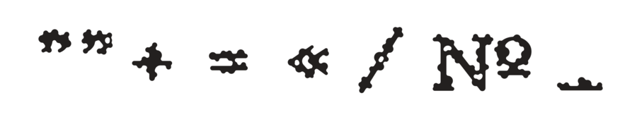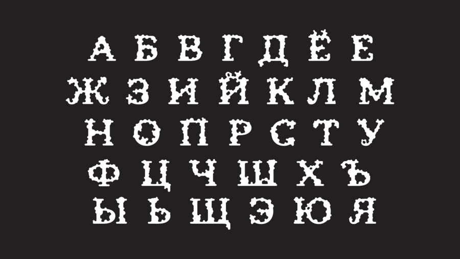 Шрифт также имеет более «разросшееся» начертание в двух вариациях — с заполненными пустотами скелета буквы и без.