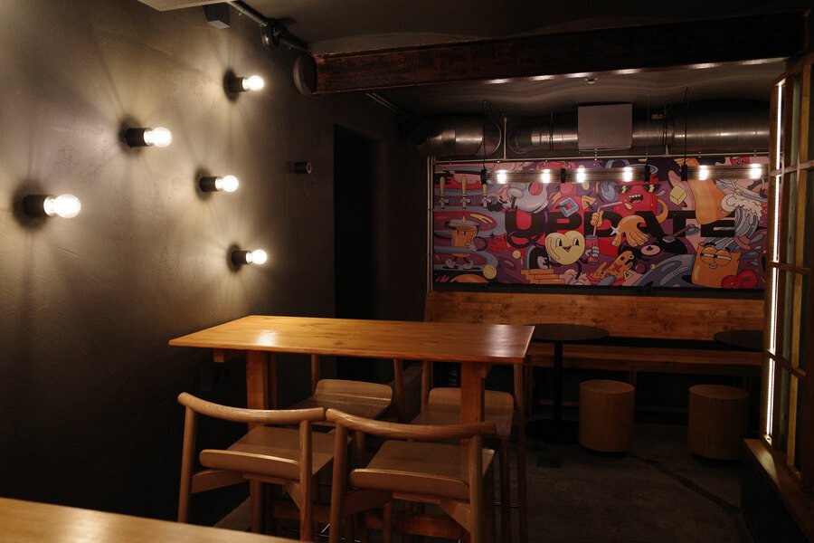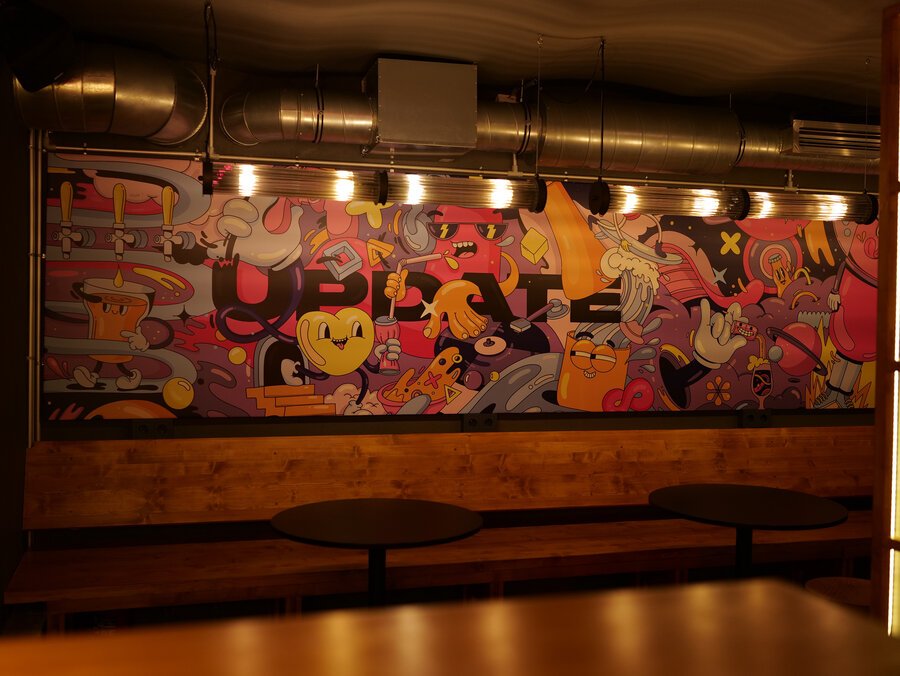 Inspired by bar motives: beer taps, dj-sets, PlayStation room, original cuisine & friendly atmosphere