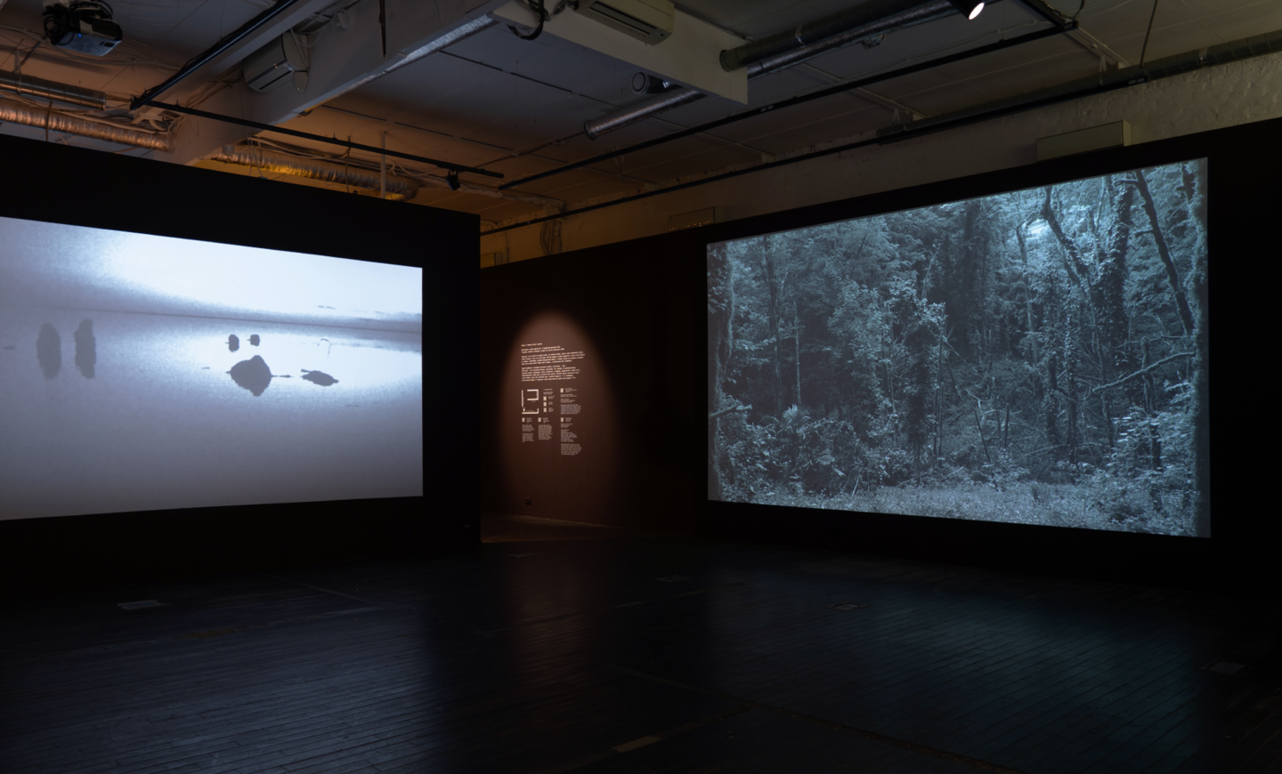 Выставка «Глядя на луну» посвящена экранному искусству и фокусирует внимание на эфемерной природе движущегося изображения, на его мерцающей неясности и поэтической глубине.