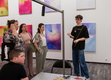 На медиаторском туре мы с участниками обсудили как работает художница, почему первая музейная выставка для художника — важное событие, что такое НИИ и почему можно исследовать все что угодно.