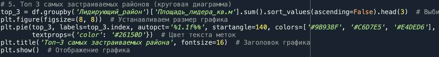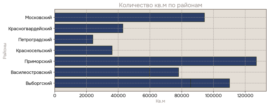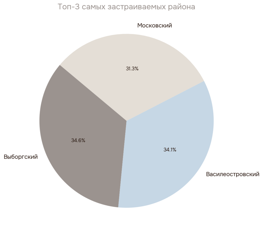 Благодаря этой диаграмме, я узнала, что мой район (Василеострвоский) находится на 4 месте, а приморский оказался самым застраиваемым районом. Это и неудивительно, хорошая инфраструктура, близость природы и чистый воздух.