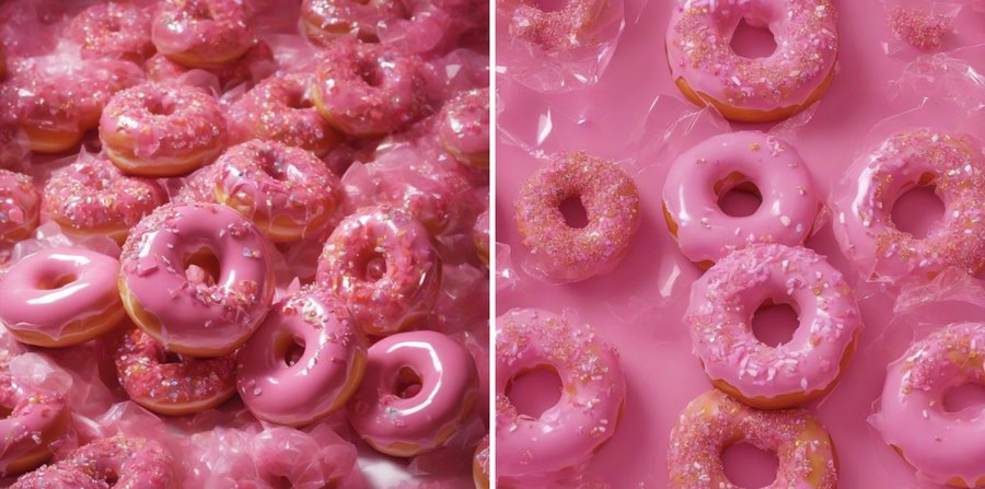 Особенно ярко проблема проявлялась при работе с более сложными объектами и продуктами. Например, попытки создать изображения бургера, пиццы или пончика.