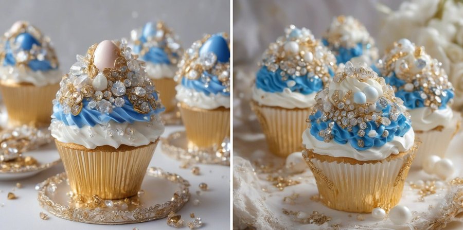 prompt = «photo in CRISTAL style, blue cake» prompt = «photo in CRISTAL style, Easter cupcake»