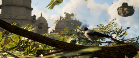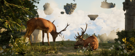 Животные стали тихими хранителями Эйриона. Олени, птицы, бабочки и еноты свободно бродят среди руин, вплетаясь в ритм затихшего мира.