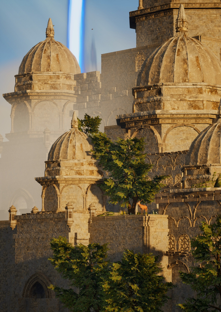 В высоком небе, среди мягких облаков, парят острова — осколки некогда единого мира. В их центре, подобно сердцу, возвышаются руины древнего замка, насквозь пронзённого светящимся столбом энергии.